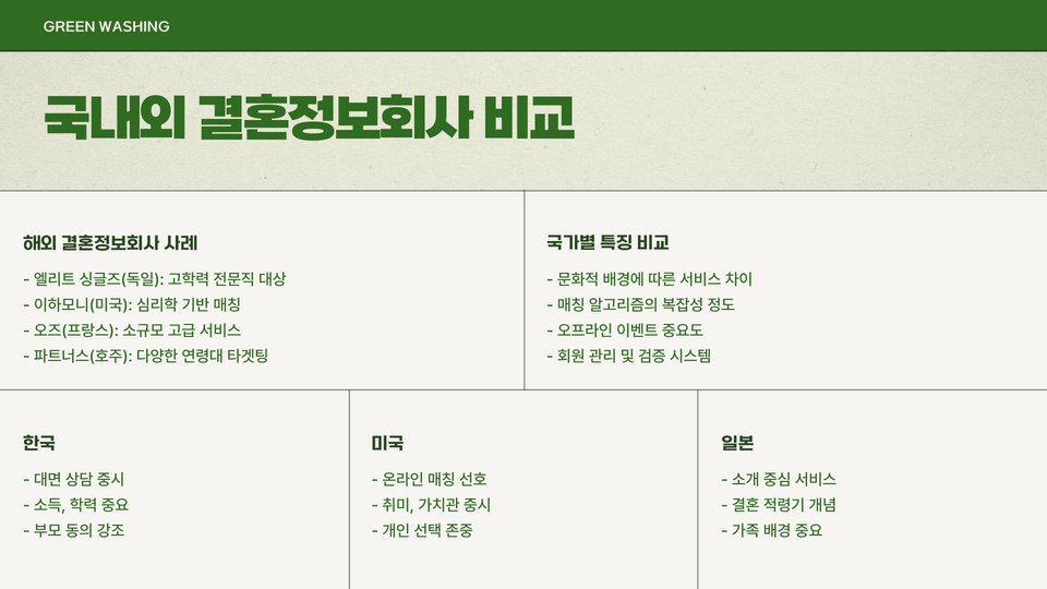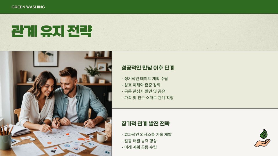또한, 특정 취미나 관심사를 가진 사람들을 대상으로 하는 전문 업체도 존재하니, 자신이 중요하게 생각하는 요소에 부합하는 회사를 선택하십시오. 같은 관심사와 가치를 공유하는 사람들과의 매칭이 더 높은 성공률을 보입니다.