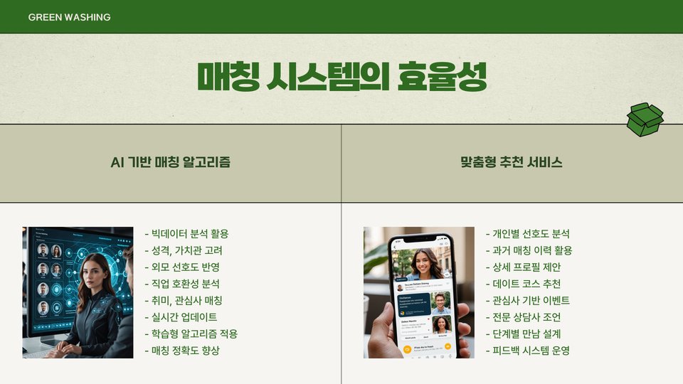 일부 회사는 데이터를 기반으로 한 알고리즘을 사용하여 매칭하는 반면, 다른 회사는 전통적인 상담 방식에 의존할 수 있습니다. 데이터 기반의 접근 방식은 빠르고 효율적인 매칭을 가능하게 하지만, 인간적인 면이 부족할 수 있습니다. 반면, 상담 방식은 시간을 요구하나, 고객의 세밀한 이해를 돕는 장점이 있습니다.