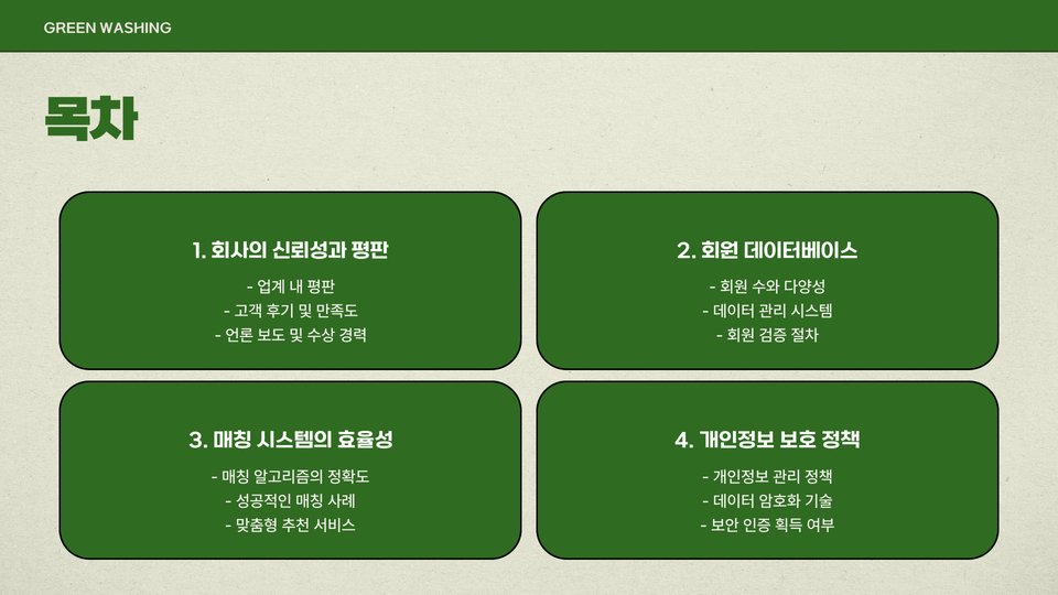 - 매칭 시스템의 체계성을 확인하는 것이 중요합니다.