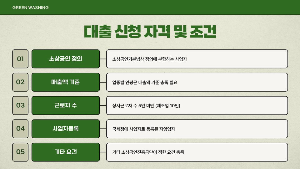 소상공인진흥공단 대출을 신청하기 위해서는 몇 가지 자격 요건을 충족해야 합니다. 먼저, 신청자는 소상공인으로 등록된 사업자여야 하며, 사업 기간이나 연매출 등의 조건이 있습니다. 대출 신청 전, 자신의 사업이 해당 조건을 충족하는지 확인하는 것이 중요합니다.