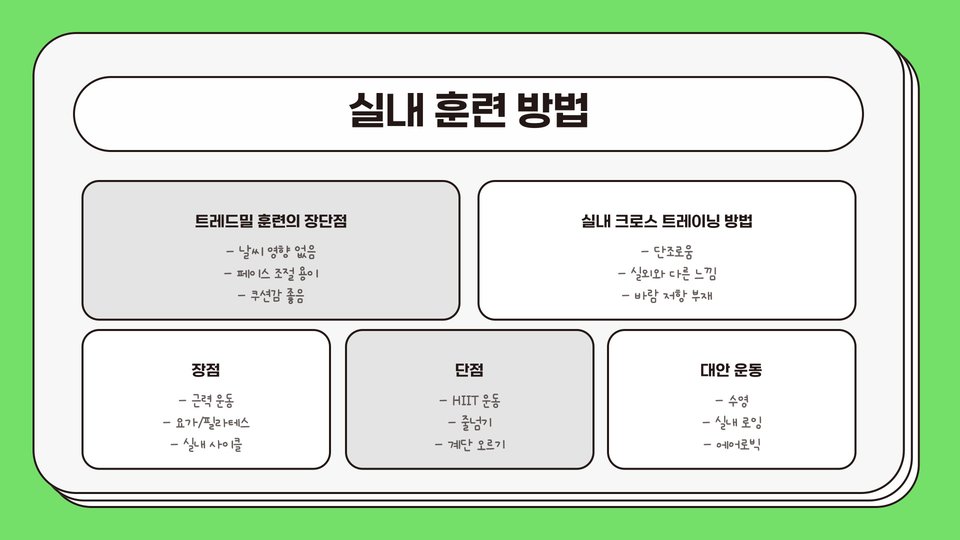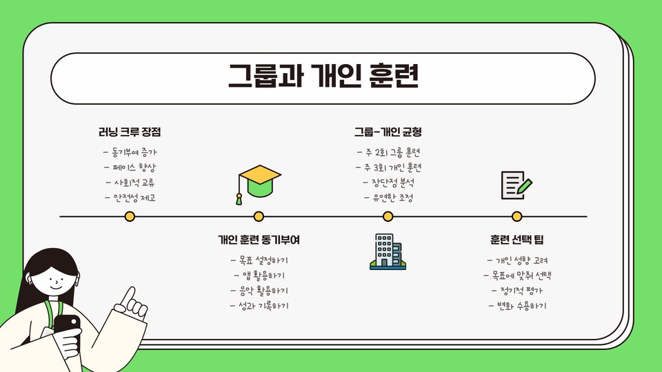 | 훈련 방법 다양화 | 인터벌 훈련과 유산소 운동 추가 |