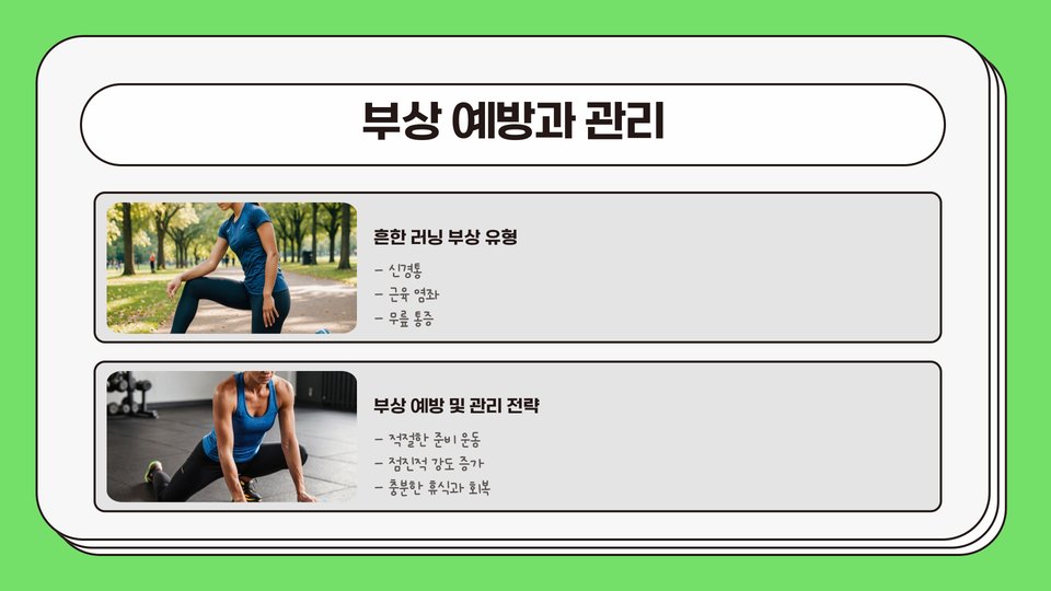 마지막으로 회복 훈련의 중요성을 잊지 말아야 합니다. 훈련 후에는 반드시 스트레칭을 통해 근육의 피로를 풀어주고, 부상 예방에 힘써야 합니다. 회복 훈련은 대개 느린 페이스로 20~30분 정도 달리거나 걷는 것이 적당합니다. 또한, 충분한 수분 섭취와 영양 섭취도 필수적입니다. 이는 몸의 회복을 촉진시키고, 훈련의 효과를 극대화하는 데 기여합니다.
