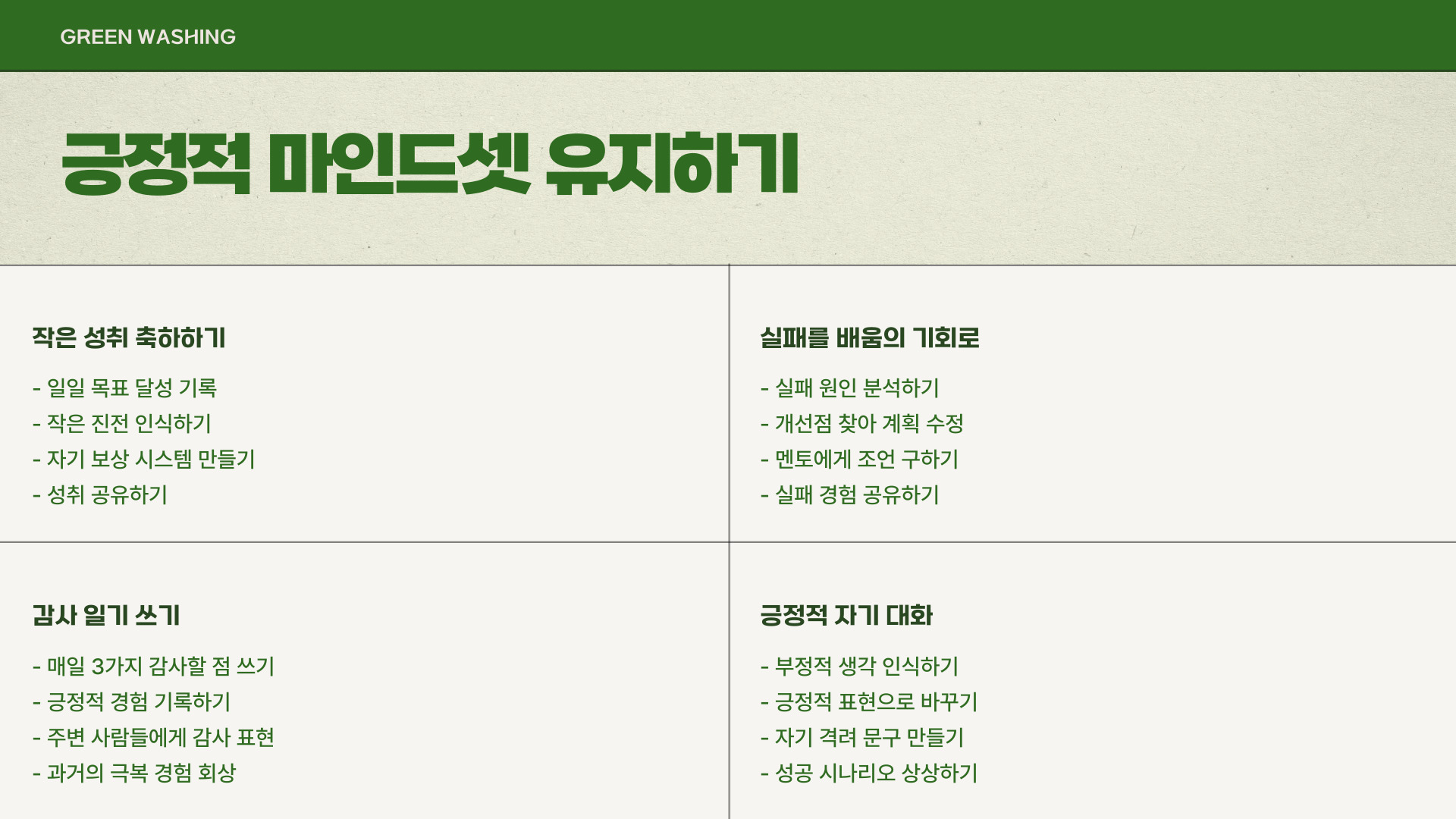 - 스트레스 해소를 위한 계획적 관리 필요