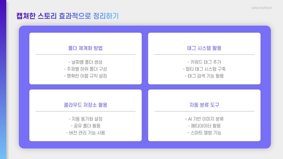 Tags: 인스타 스토리, 스토리 캡쳐, 시간 절약, 사진 관리, 소셜 미디어, 저작권, 클라우드 저장소, 스크린 레코더, 사진 편집, 효율적인 관리