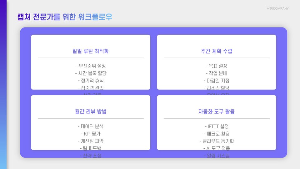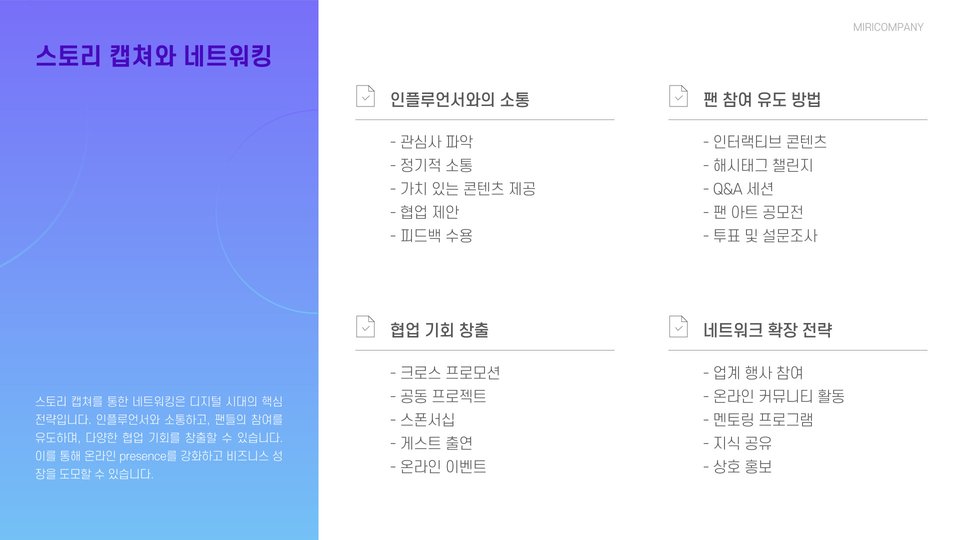 마지막으로, 주기적인 점검을 통해 여러분의 스토리 캡쳐 방식을 계속해서 개선할 수 있습니다. 사용하지 않는 방법은 과감히 버리고, 새로운 트렌드를 반영한 스토리 캡쳐 방법을 도입하면 지속적으로 더 효율적으로 콘텐츠를 제작할 수 있습니다.