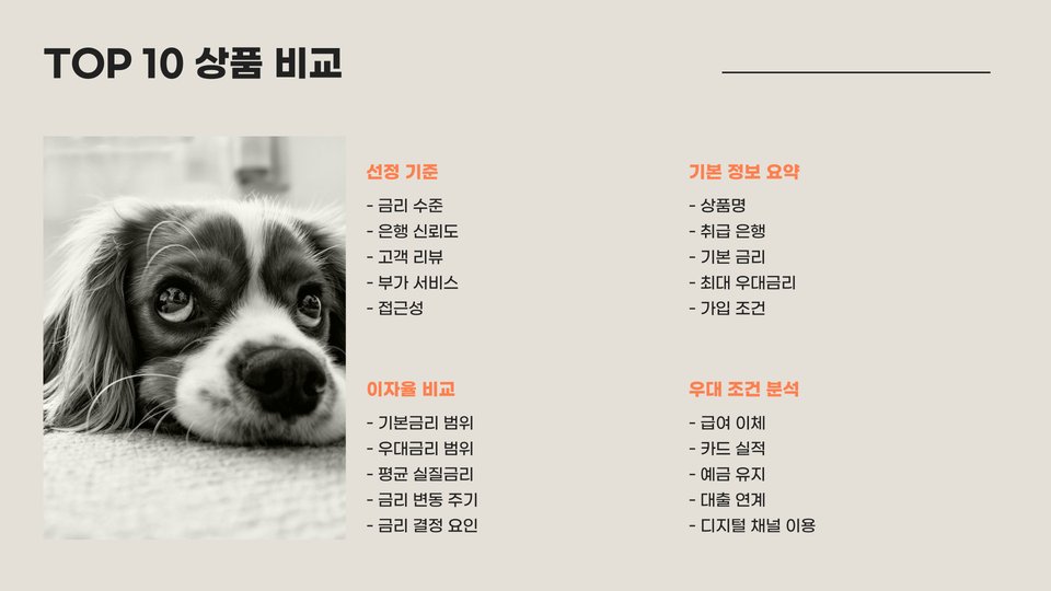 - 부가 서비스: 각 금융기관에서 제공하는 추가 서비스나 혜택도 고려해야 합니다.