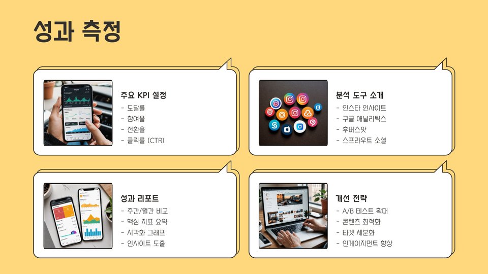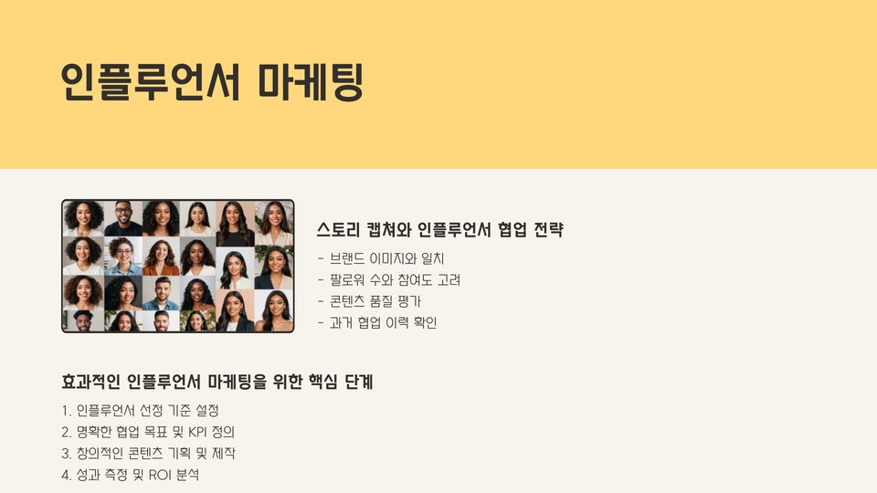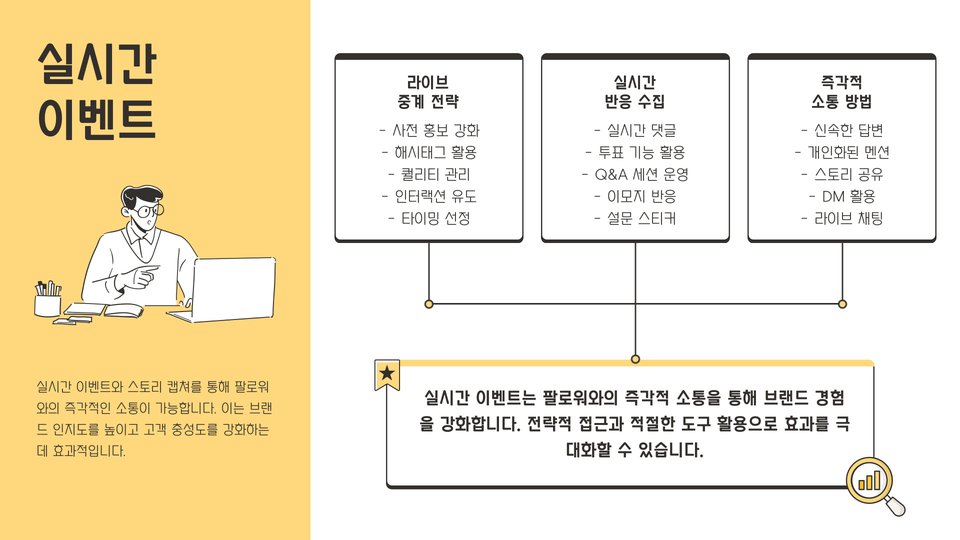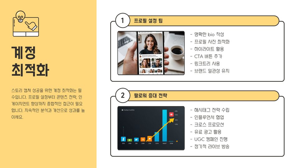| 창의적인 콘텐츠 제작 | 독특한 시각적 요소와 이야기로 팔로워의 관심을 끌기 |
